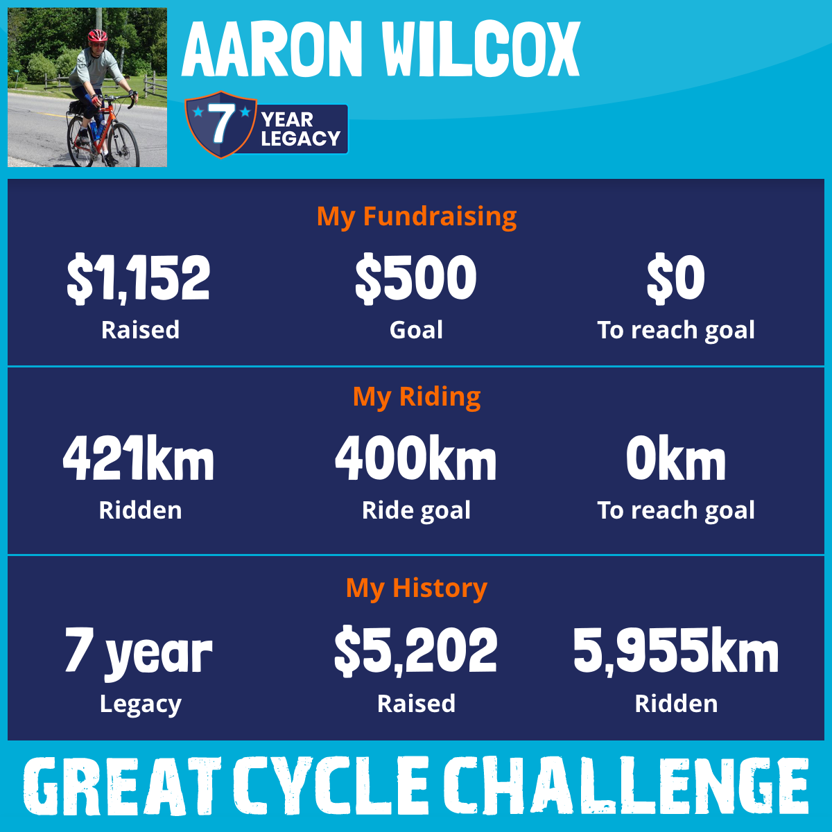 I am riding 400 km in memory of Margaret, Bill, Ivy, Dave, Gary, Patricia, Terry, Bruce. Please sponsor me and support my challenge to fight kids' cancer and save little lives.