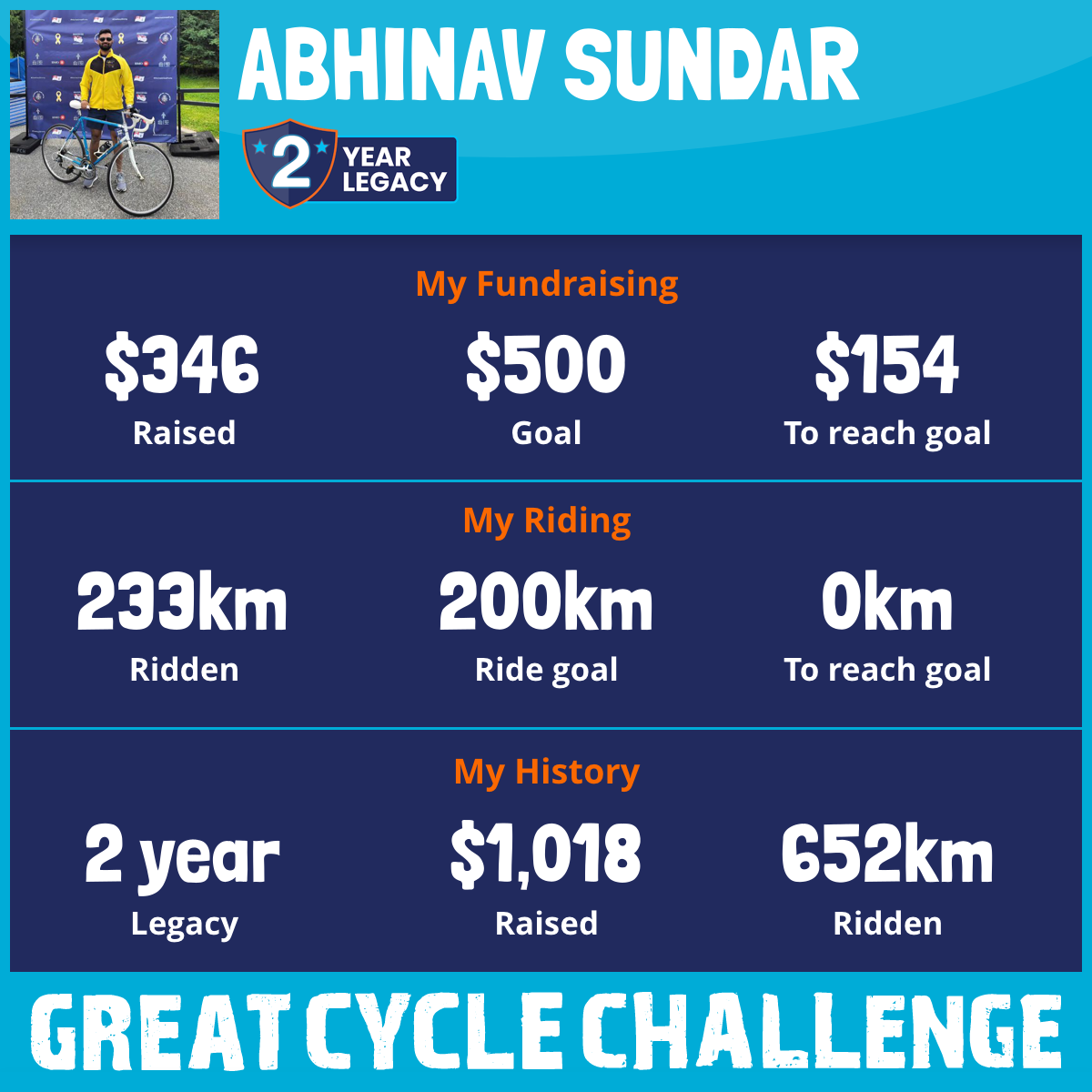 233 km Ridden$346 Raised2026