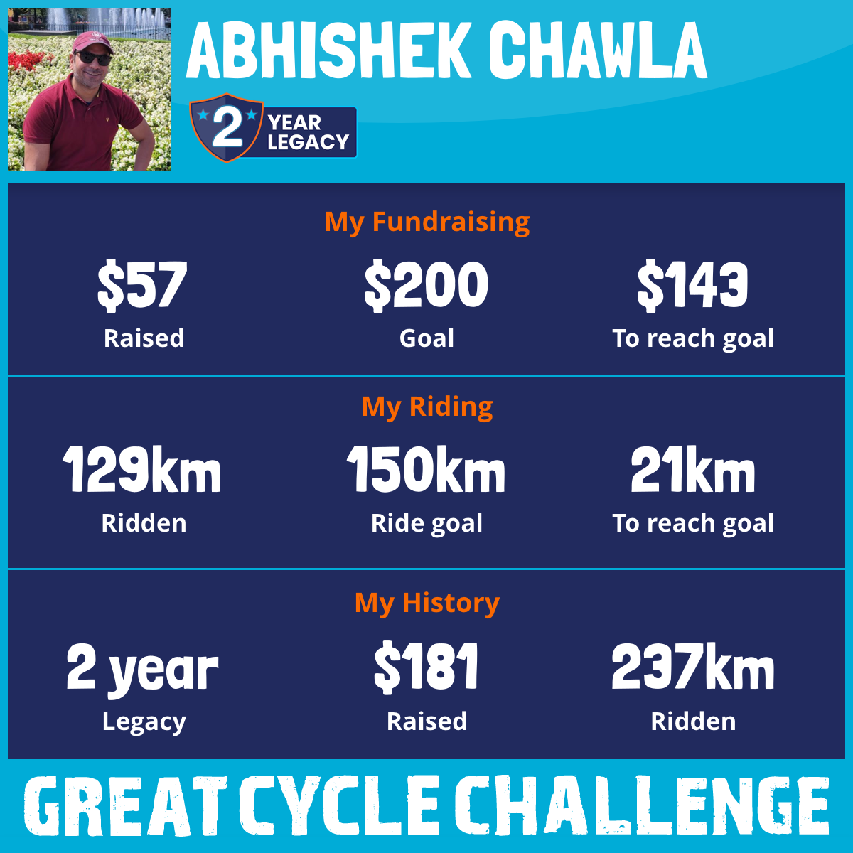129 km Ridden$57 Raised2026