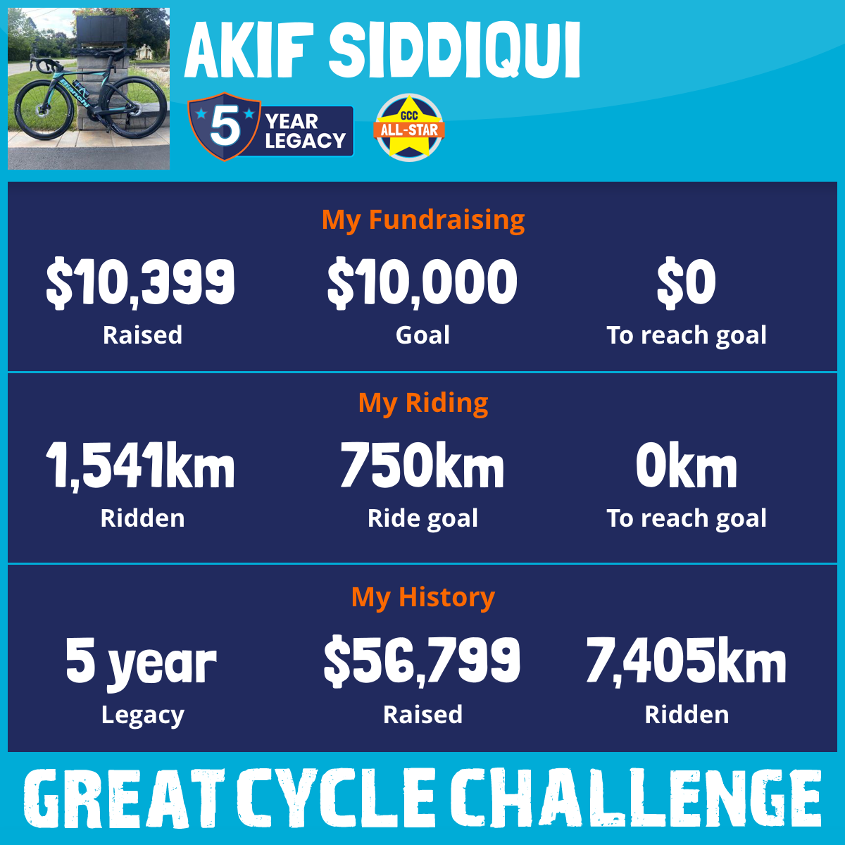 1,541 km Ridden$10,399 Raised2025
