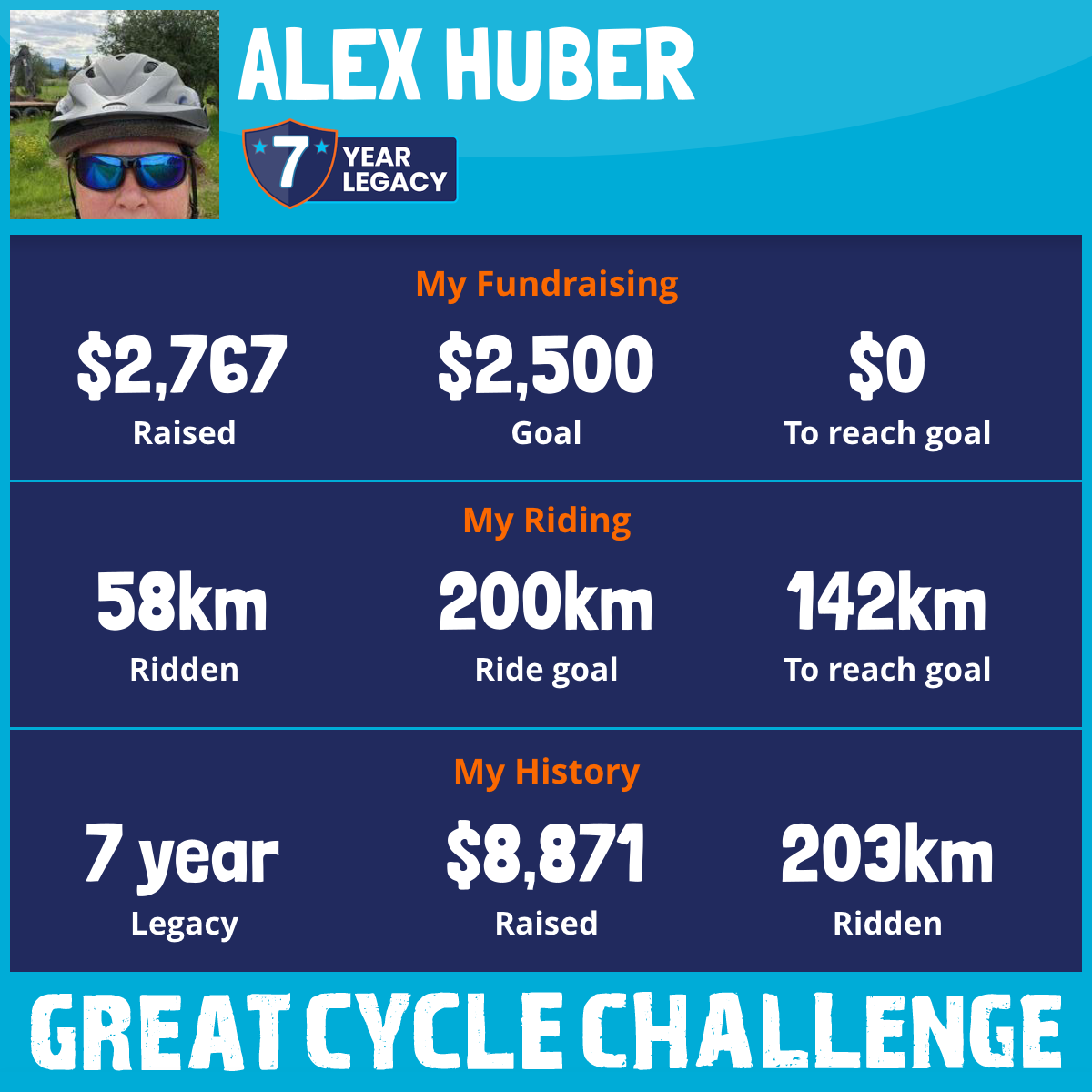 58 km Ridden$2,767 Raised2026
