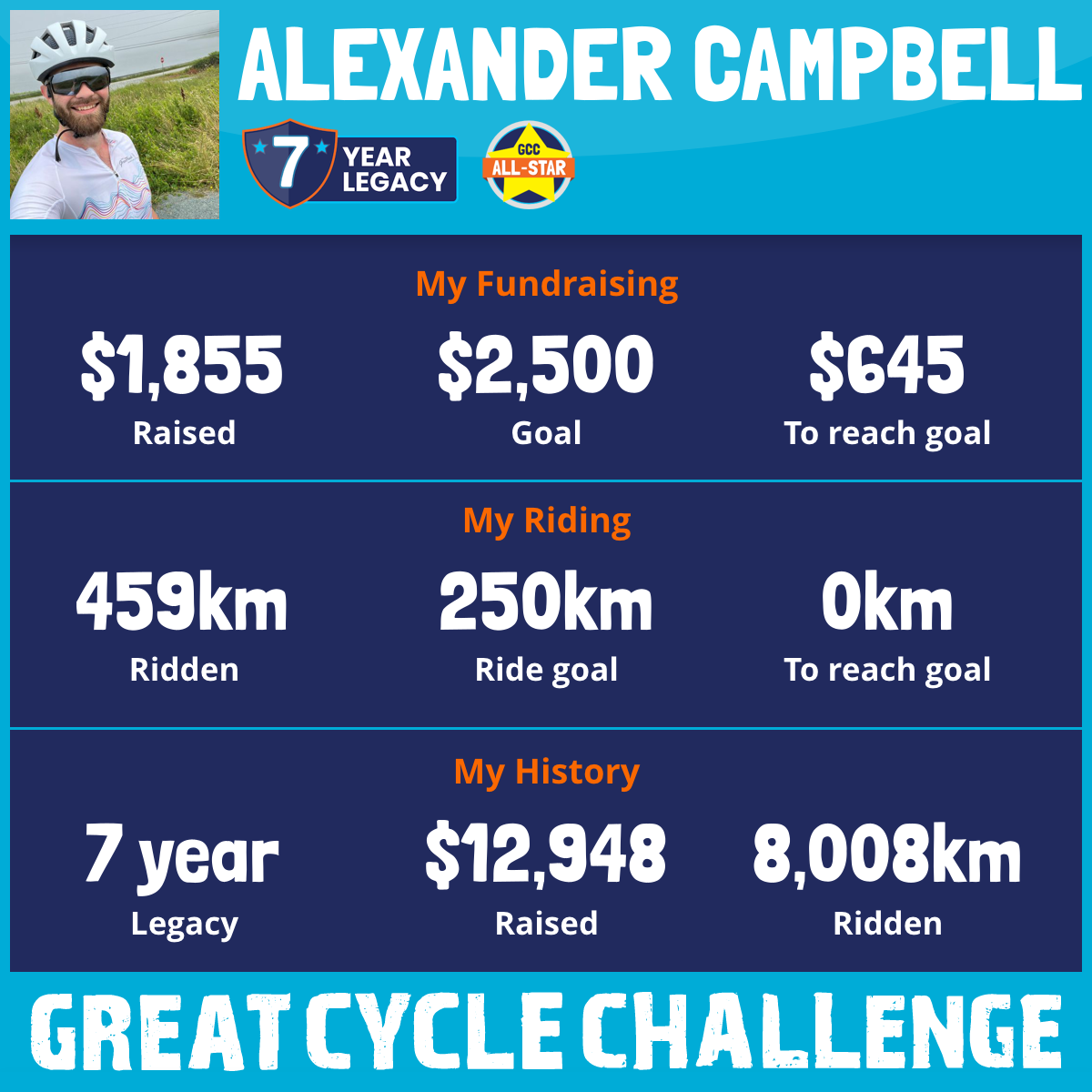 I am riding 125 km in memory of Howard Campbell. Please sponsor me and support my challenge to fight kids' cancer and save little lives.