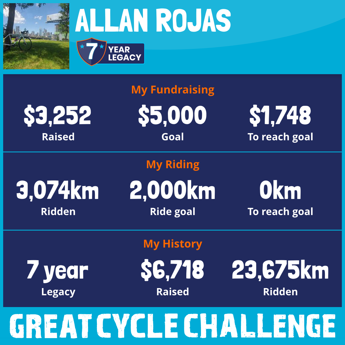 3,074 km Ridden$3,252 Raised2025