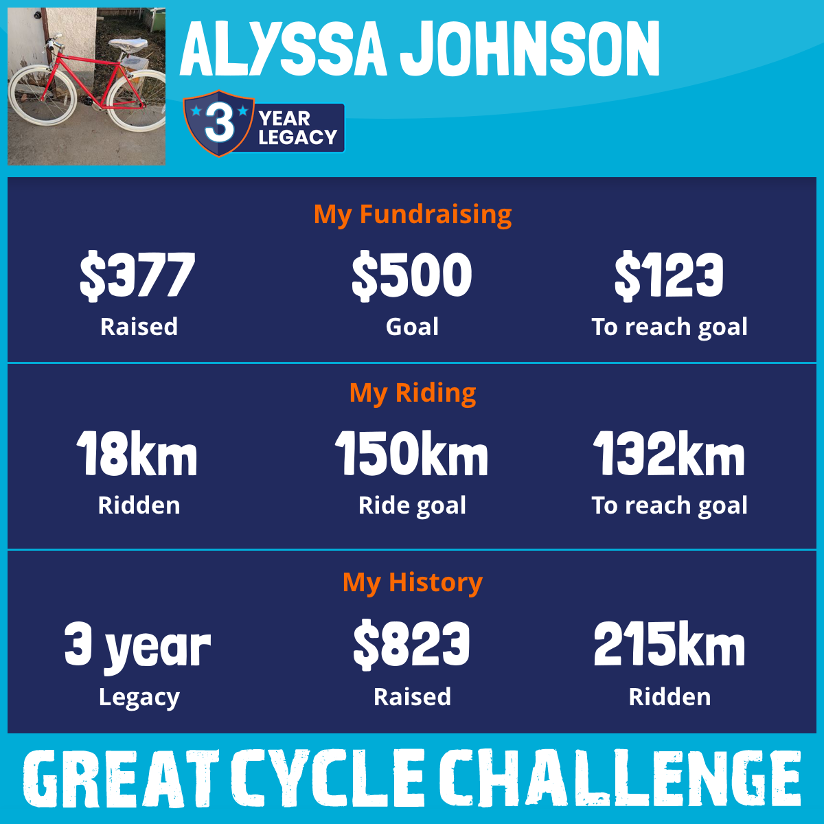 197 km Ridden$420 Raised2019