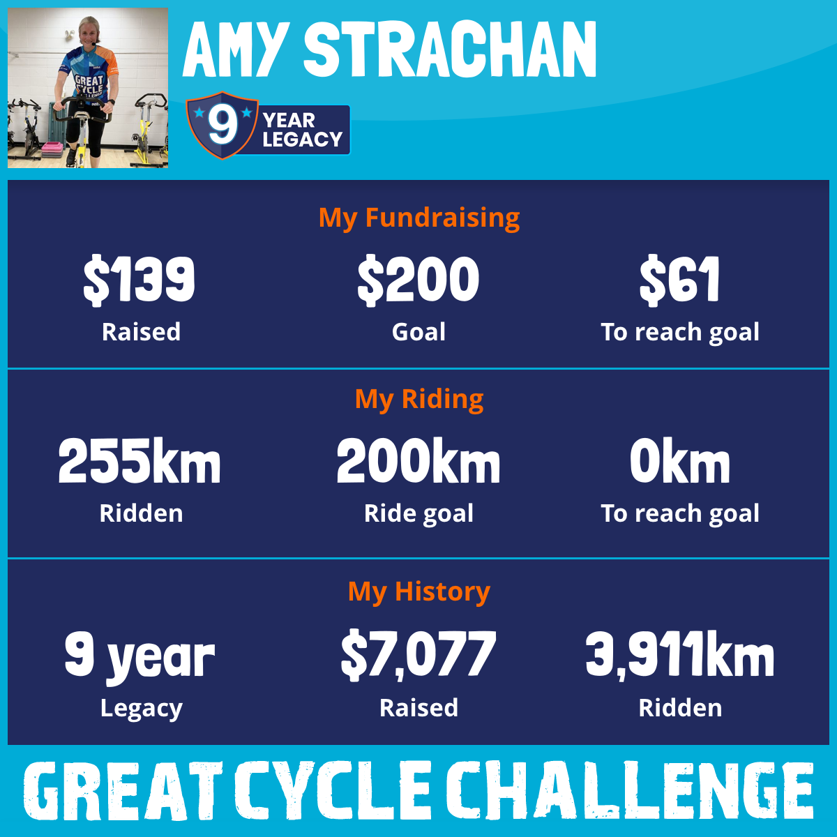 This August, I am taking part in my 9th year in the Great Cycle Challenge to fight kids' cancer! In total, I've rasied $6,938.41 and ridden 3,655.6 km since my first challenge in 2017.