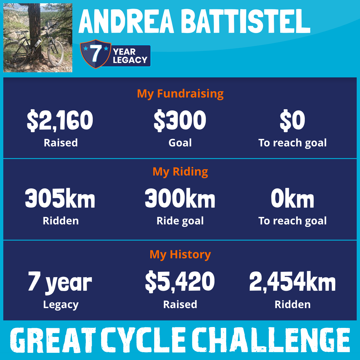 305 km Ridden$2,160 Raised2026