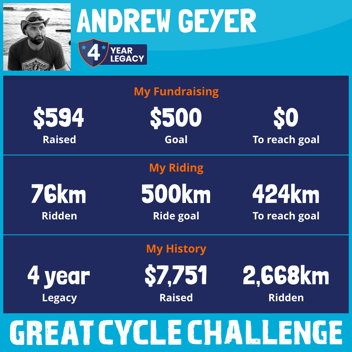 1,505 km Ridden$2,827 Raised2023
