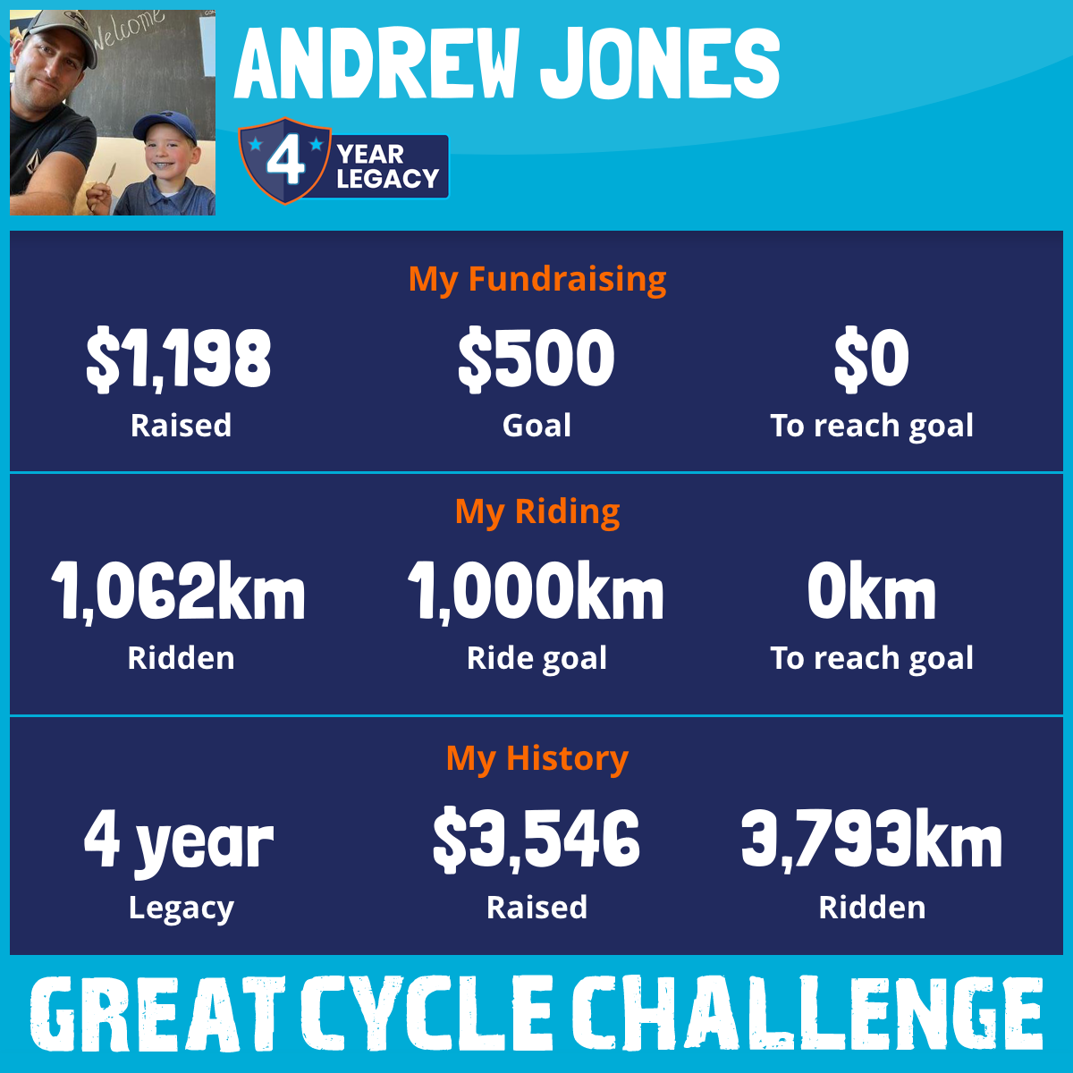 1,062 km Ridden$1,198 Raised2025