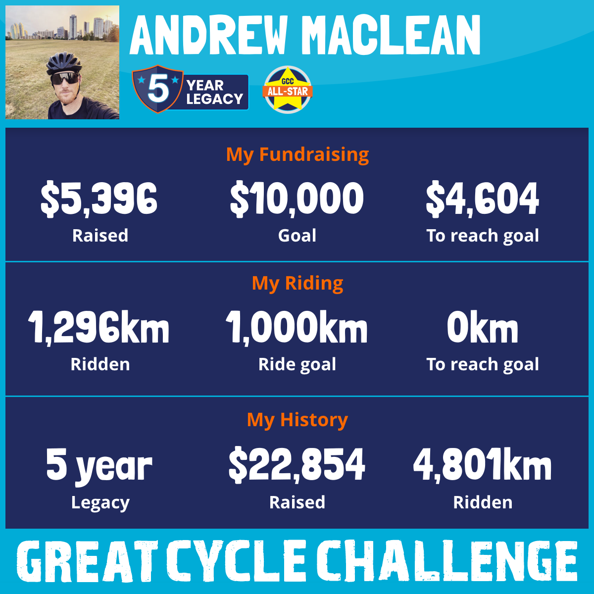 This August, I am taking part in my 5th year of the Great Cycle Challenge to fight kids' cancer! Sadly, I don’t think I will be able to beat my km goal of last year, I’m dealing with a minor knee injury and will have to manage the injury/pain throughout the month. I’m going to do my best inside every day, even if it is just a few km.