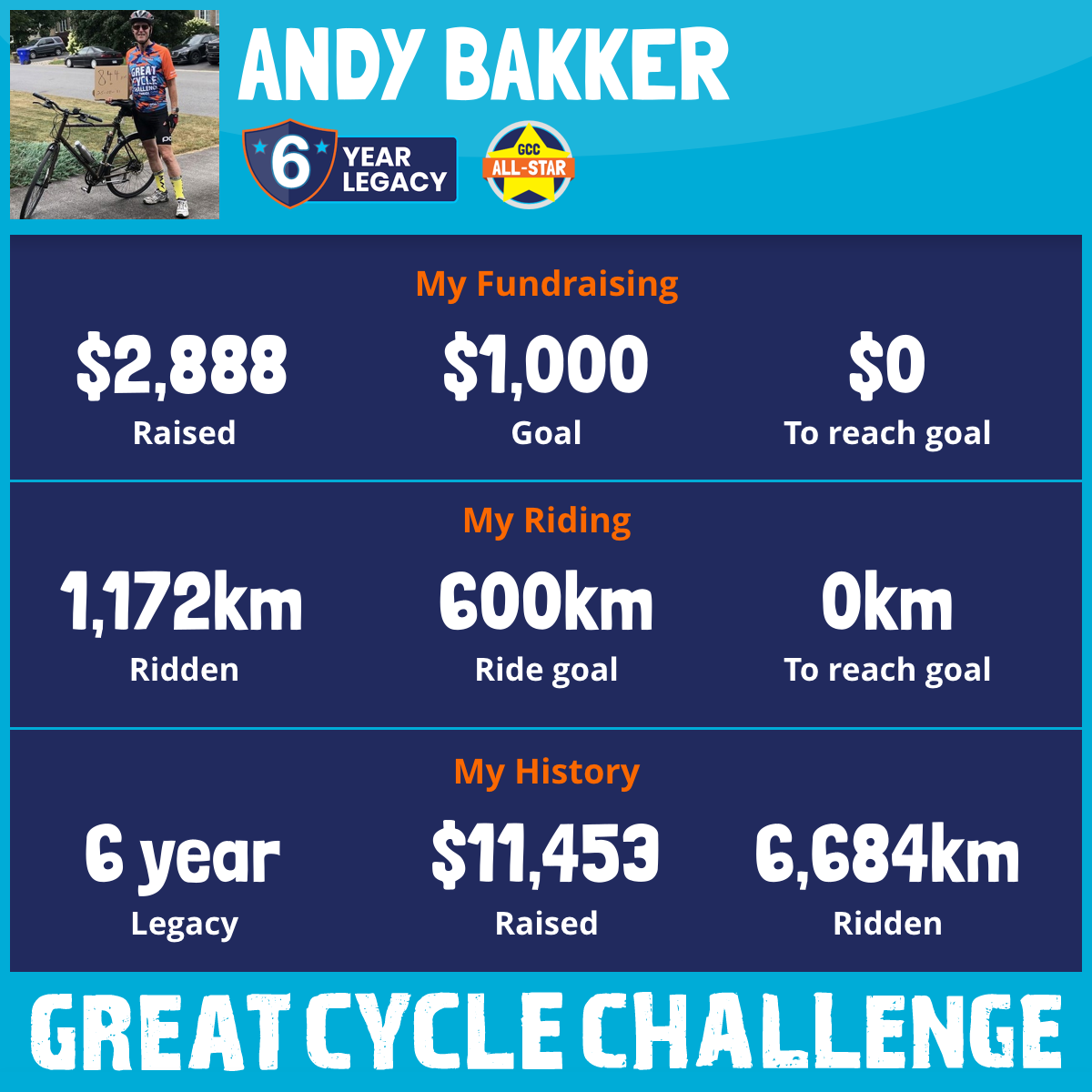 1,172 km Ridden$2,888 Raised2025