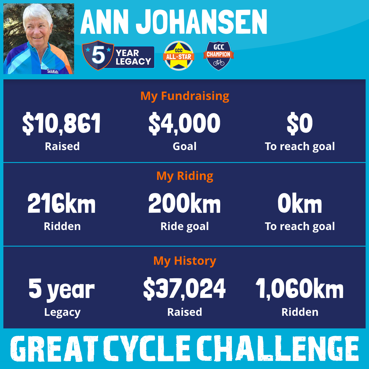 216 km Ridden$10,861 Raised2026