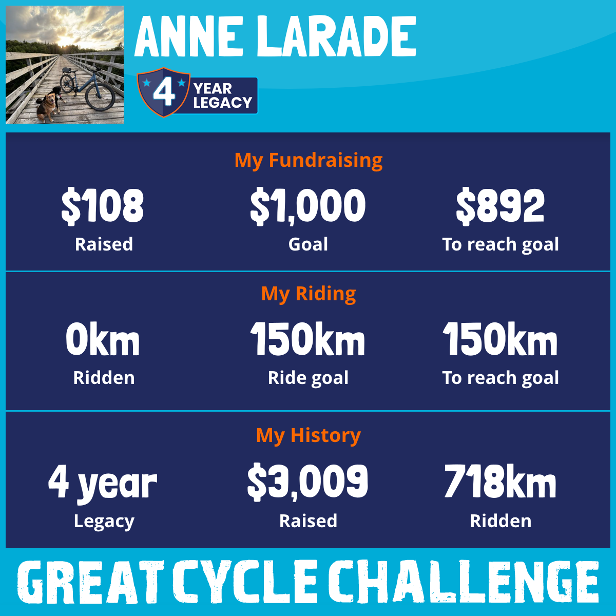 94 km Ridden$350 Raised2019