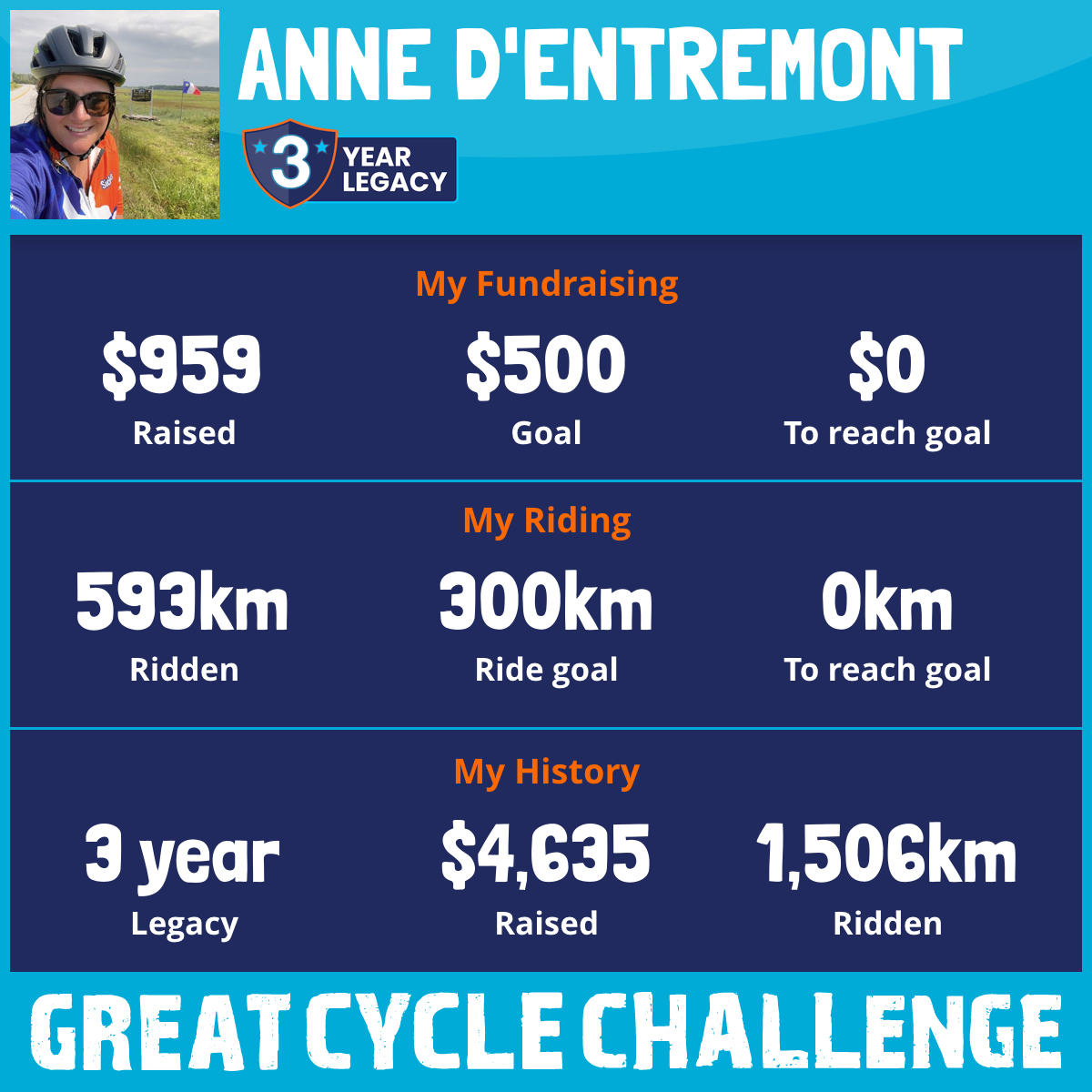 593 km Ridden$959 Raised2026