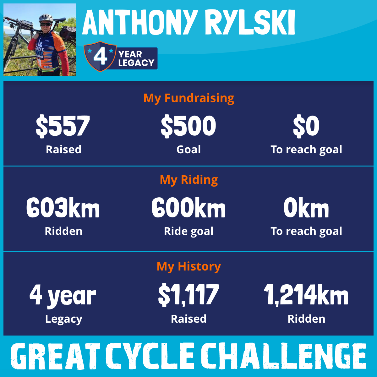 603 km Ridden$557 Raised2026