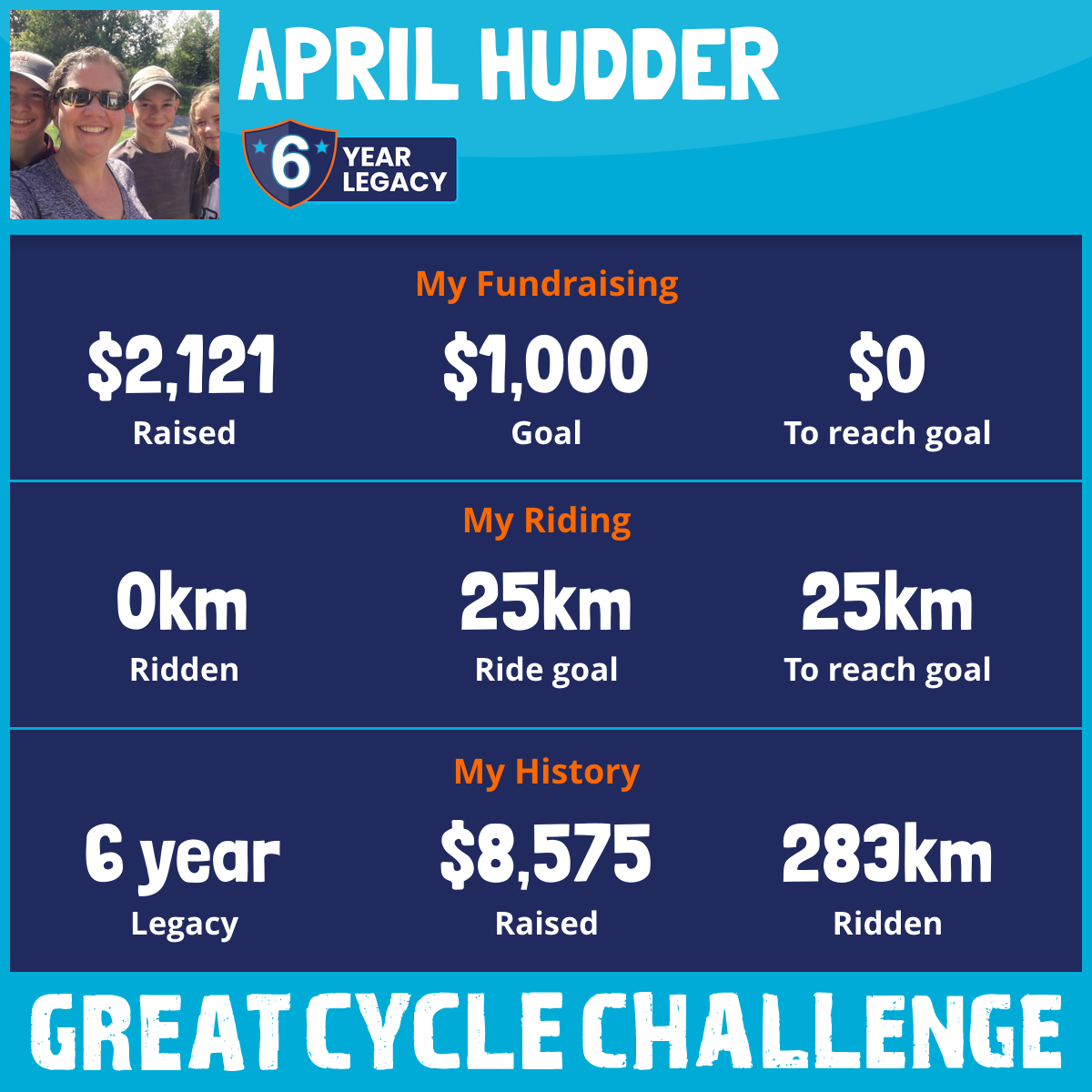 76 km Ridden$1,002 Raised2021