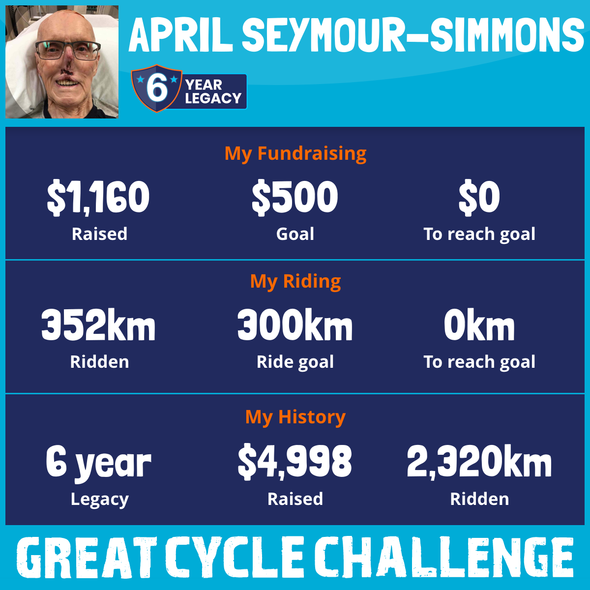 I am riding 300 km in memory of my dad, Ronald Stanley Seymour. Please sponsor me and support my challenge to fight kids' cancer and save little lives.