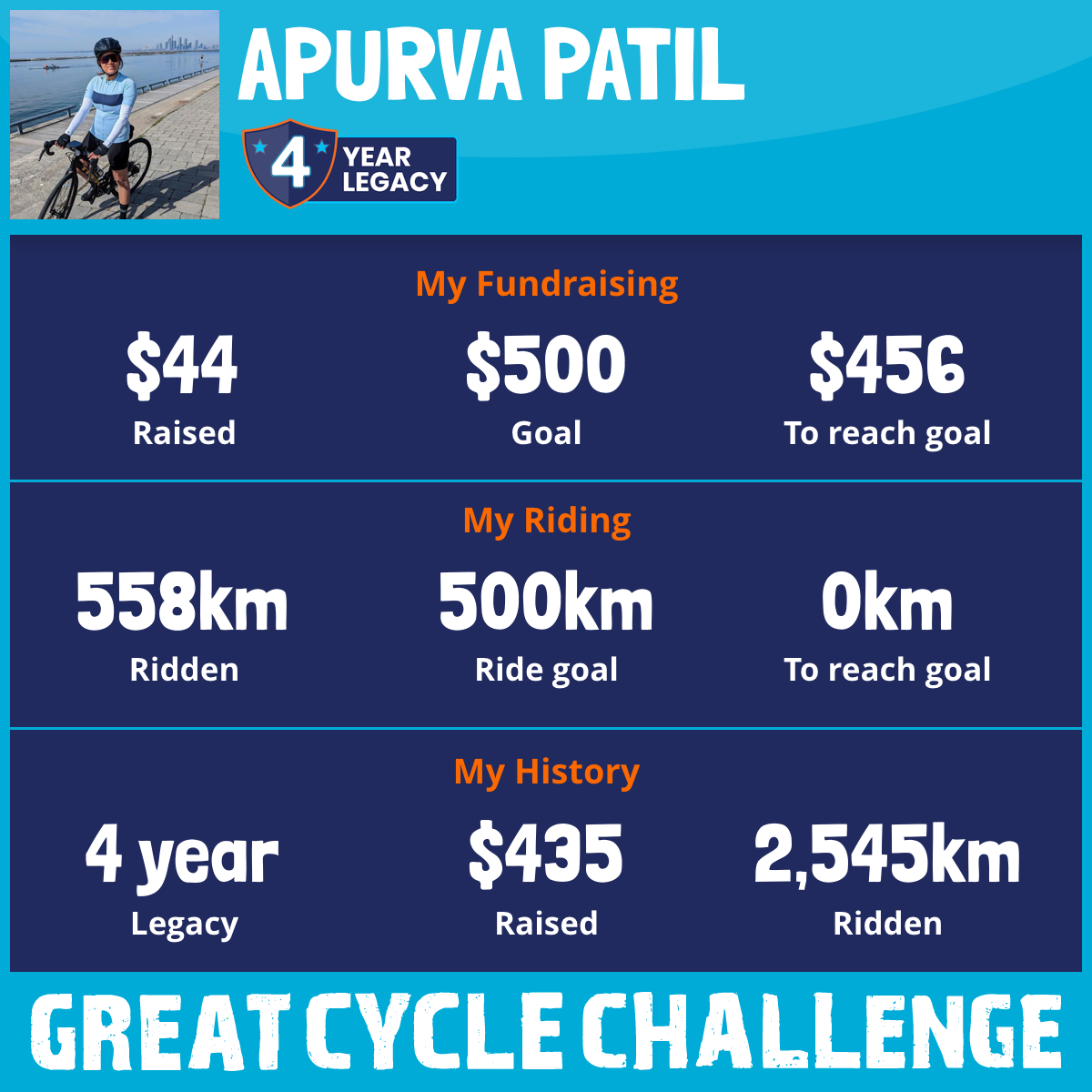 558 km Ridden$44 Raised2026