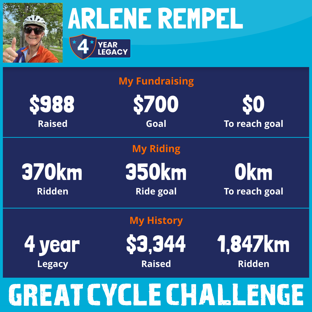 370 km Ridden$988 Raised2026