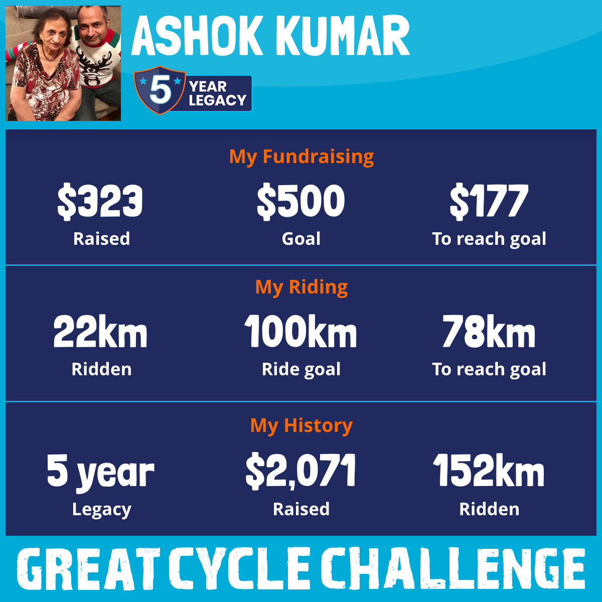 22 km Ridden$323 Raised2026