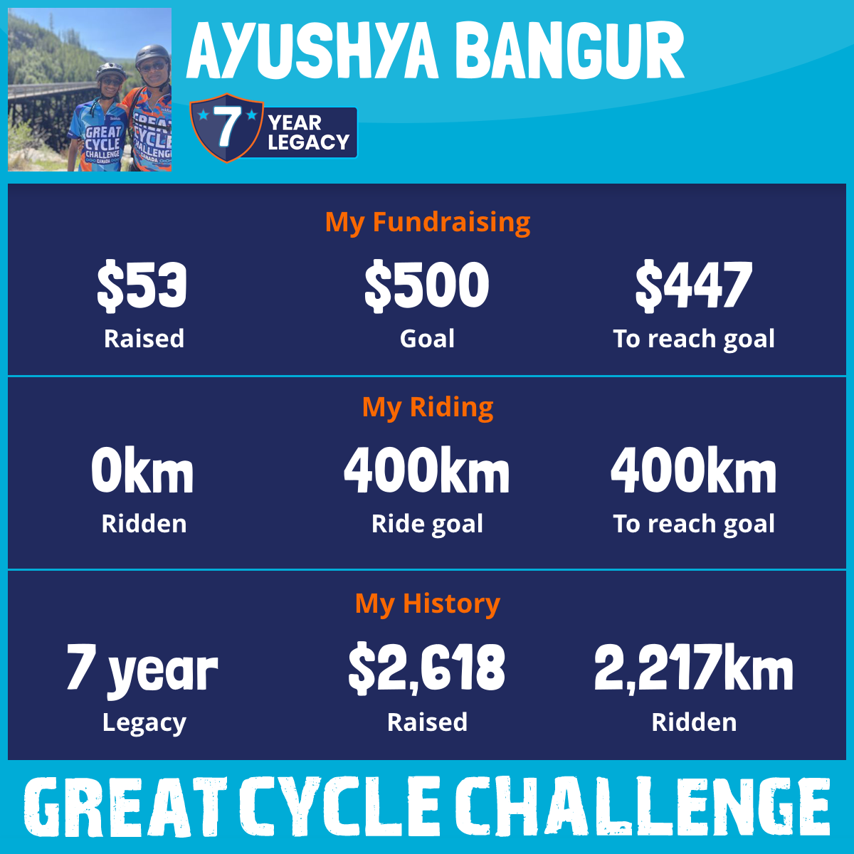 I am riding 400 km in memory of Ekasha Bangur. Please sponsor me and support my challenge to fight kids' cancer and save little lives.