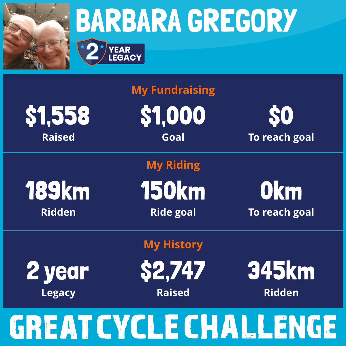 189 km Ridden$1,558 Raised2026