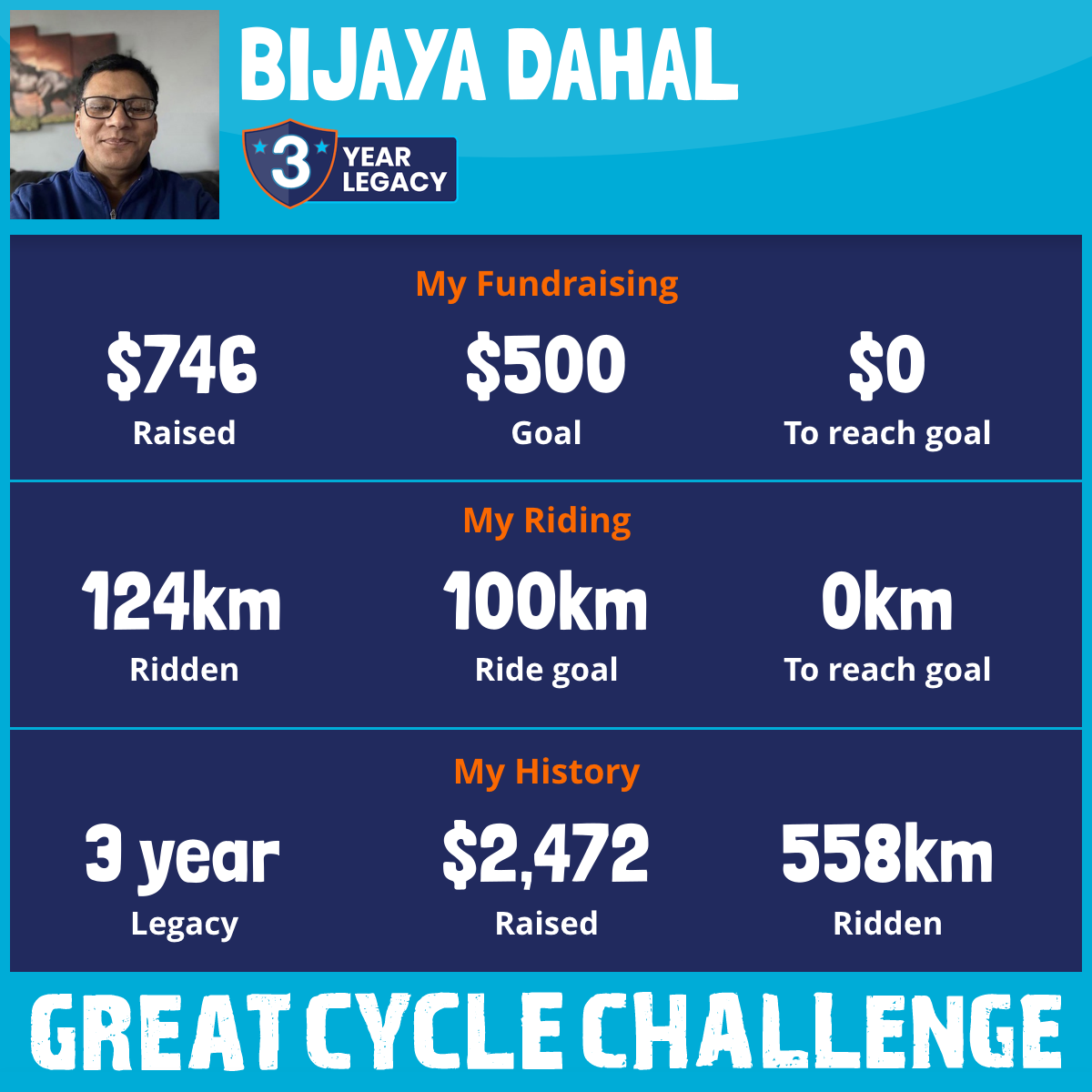 124 km Ridden$746 Raised2026