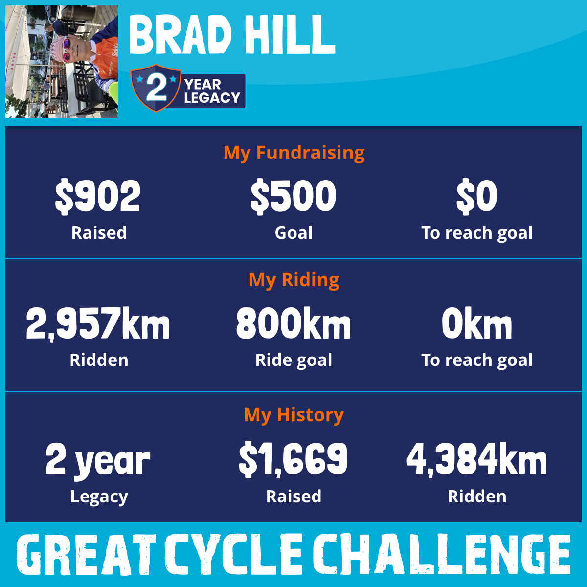 2,957 km Ridden$902 Raised2025