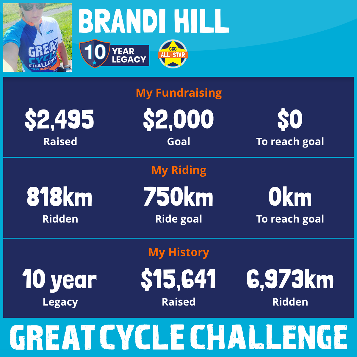 818 km Ridden$2,495 Raised2025