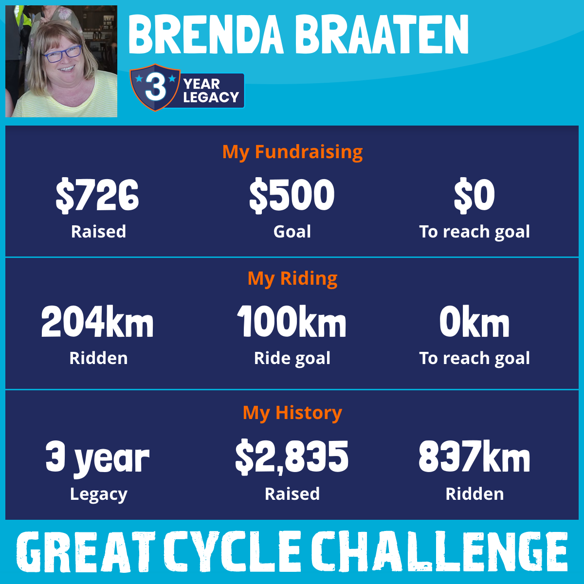 204 km Ridden$726 Raised2025