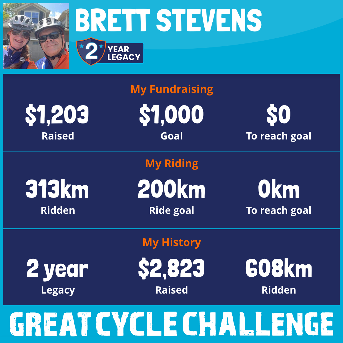 313 km Ridden$1,203 Raised2025