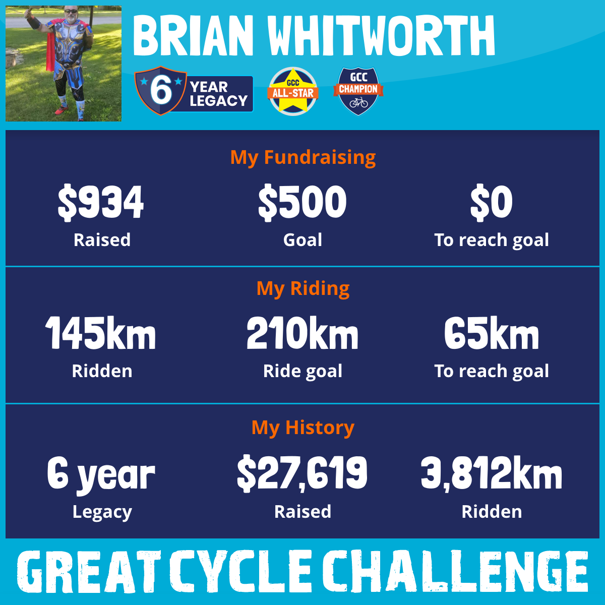 Again this August, I am taking part in the Great Cycle Challenge to fight kids' cancer!