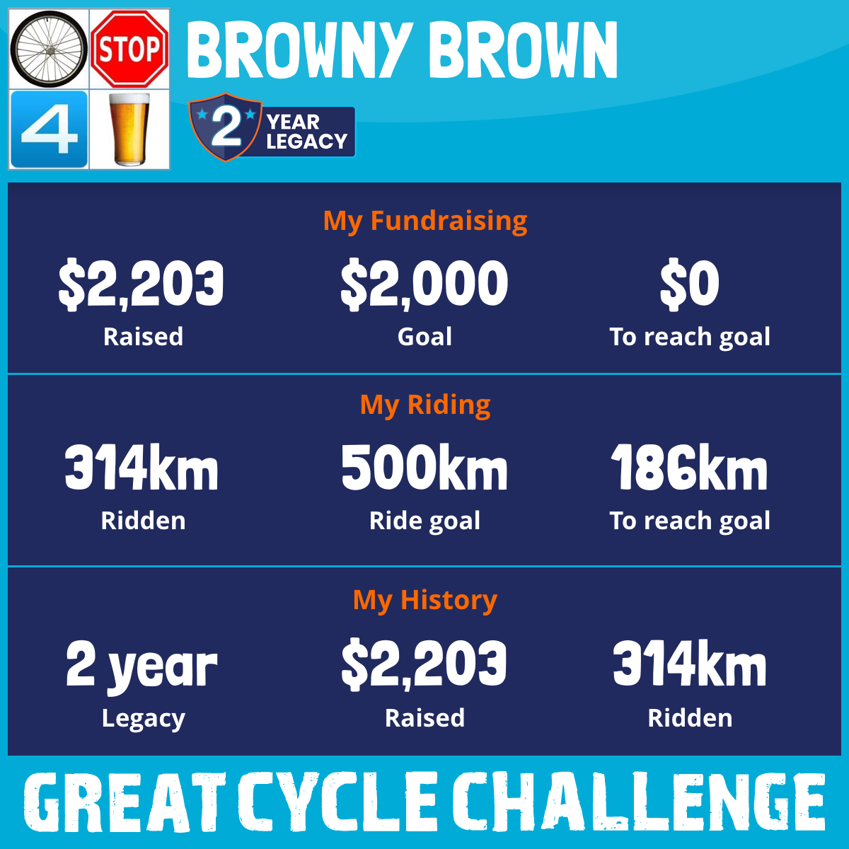 314 km Ridden$2,203 Raised2025
