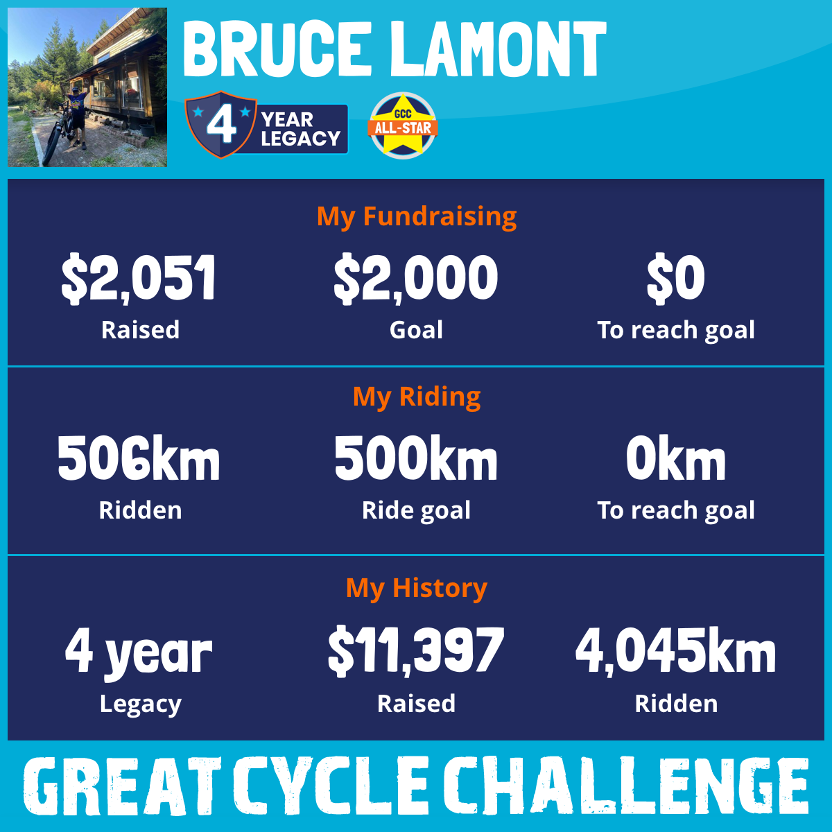 This will be my fourth year of fundraising for the kids fighting Cancer, and I look forward to the challenge. The first year was truly remarkable because of the huge support I received from my family and friends, old and new. I rode in B.C. and Ontario during a scheduled vacation to see my grandson there. He was on my team and had his pledge to achieve also, so we managed to each meet our targets together, what a rush. The young girl who we rode for was battling leukemia, but by the end of our challenge, she had won her battle and beat it. My second year was made even more meaningful with the passing of a young 10-year-old boy in Germany, who by chance was the grandson of a high school friend of mine in the 60's. He had written a book titled" The Hidden Land of the Dragons" his name was Alexandre Sax Gomes. So with Tesla and Alex in my heart, I beat my pledge of $2500 and reached Super Star Status. Thanks again to an even bigger support base than the previous year. The $2500 pledge included a Super Star Jersey which I wear with pride, and was able to get one for Tesla, in a very small girl size 5. Her mom says she loves it and hopefully will ride for the team with it this year. She is the real Super Star in my opinion. So this year I am again keeping their names in my mind and another survivor who is a dear friend of mine who won her battle with Cancer. I am aiming for a $10,000 target in 4 years and this gives me a chance to push and raise as much as I can to take some pressure off my 80-year-old body in this year's Challenge. Wish me luck and dig deep as you can please, and thank you all again for the support you have given. Together I know I will reach my goal. also RIP dear Susan. another Outlaw