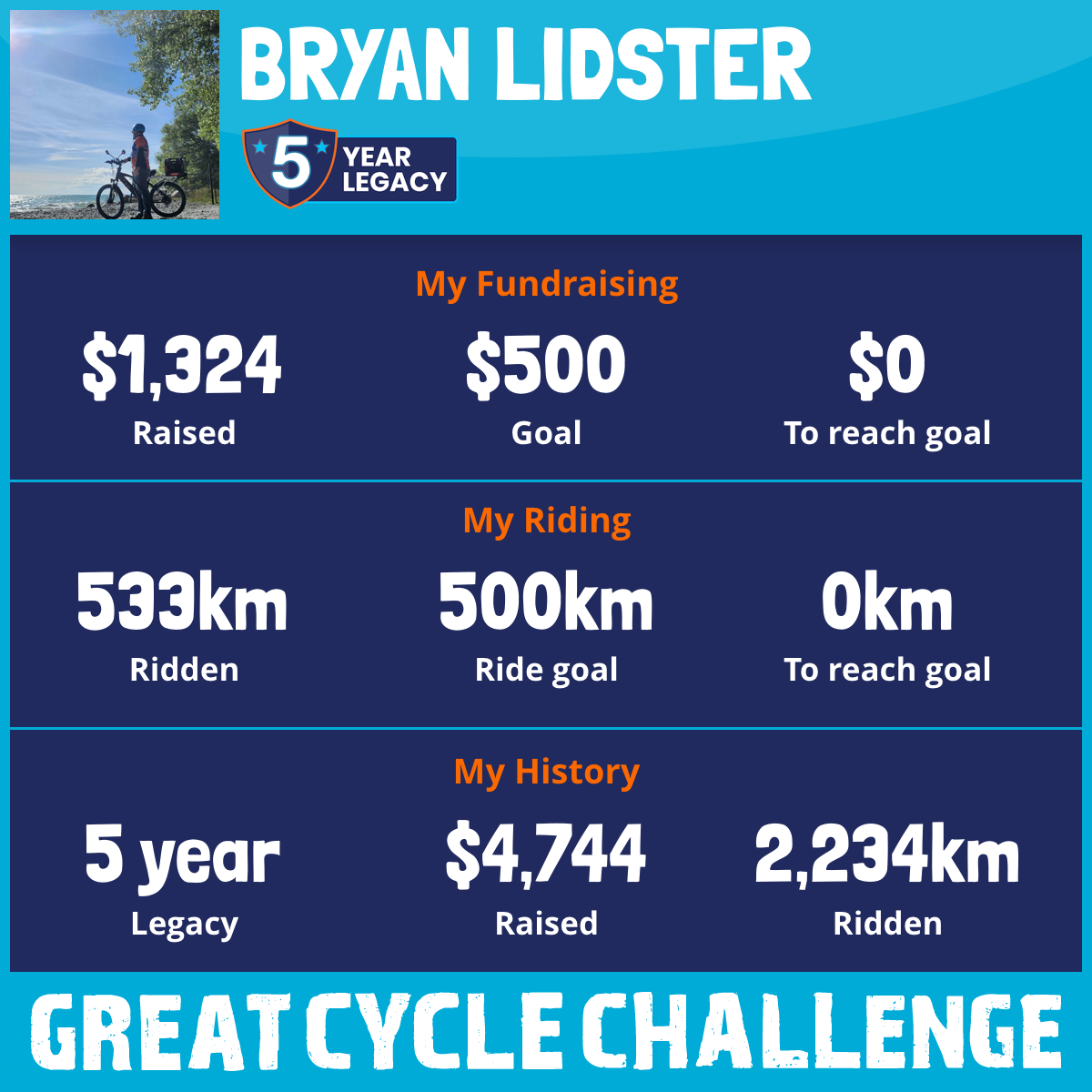 This August, I am taking part in the Great Cycle Challenge to fight kids' cancer! Why? Because right now, over 1,700 children are diagnosed with cancer every year, and it's the biggest killer of children from disease in Canada. Kids should be living life, not fighting for it.So I am raising funds through my challenge to help these kids and support SickKids Foundation to allow them to continue their work in developing treatments and finding a cure for childhood cancer. Please support me by making a donation to give these kids the brighter futures they deserve. Your support will change little lives. Thank you for helping fight Kid's Cancer with us all.