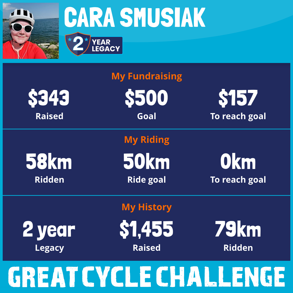 58 km Ridden$343 Raised2026