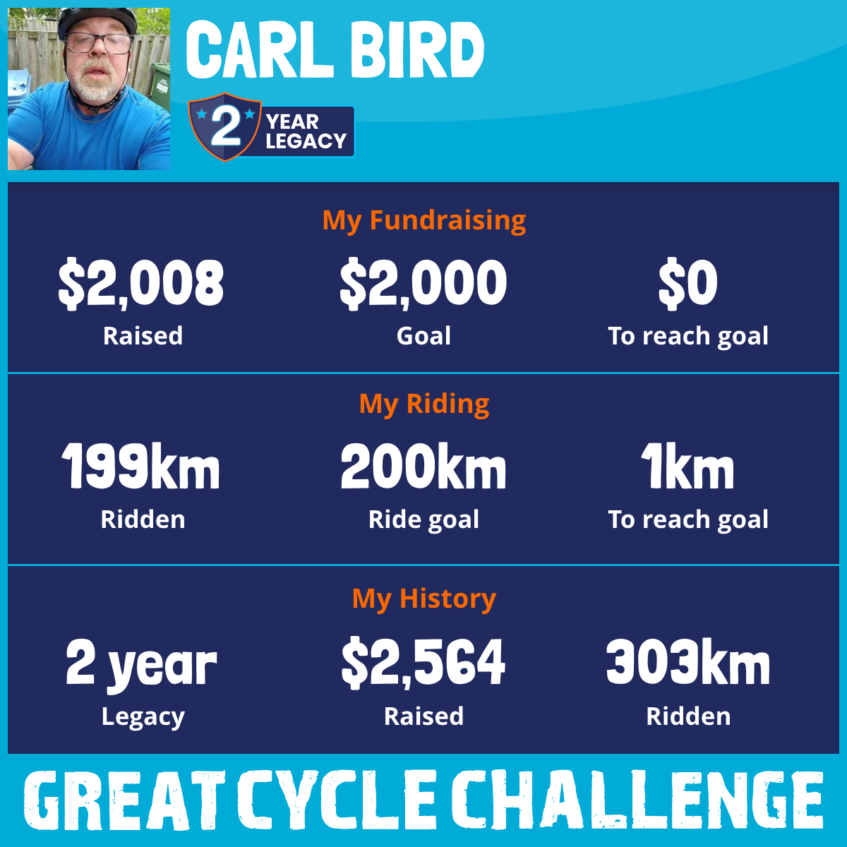 199 km Ridden$2,008 Raised2026