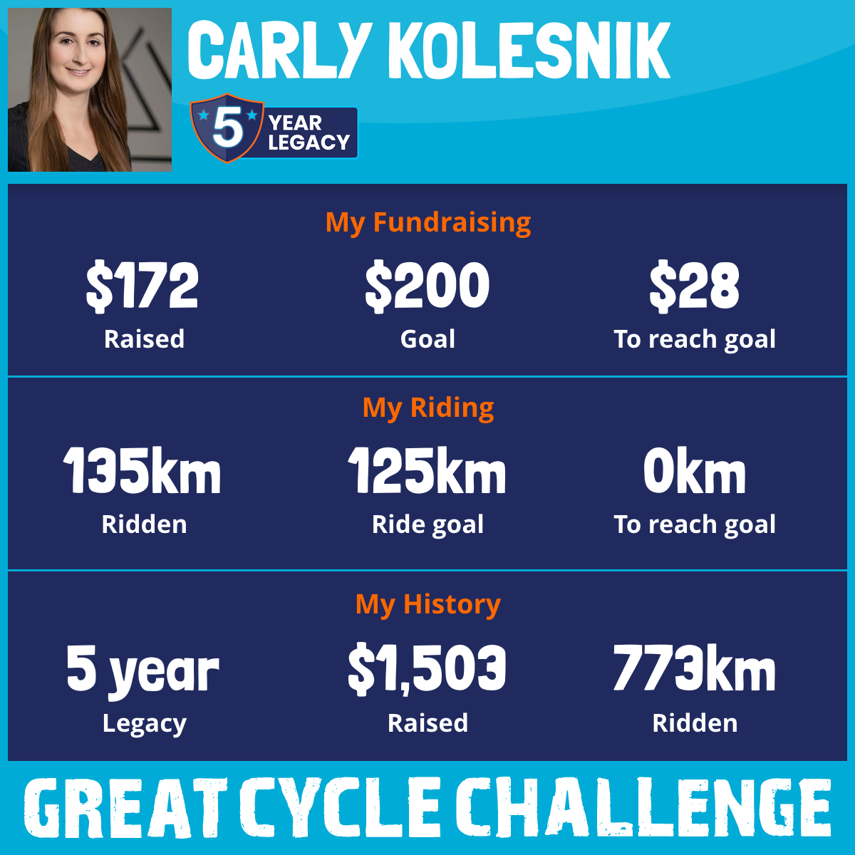 135 km Ridden$172 Raised2025