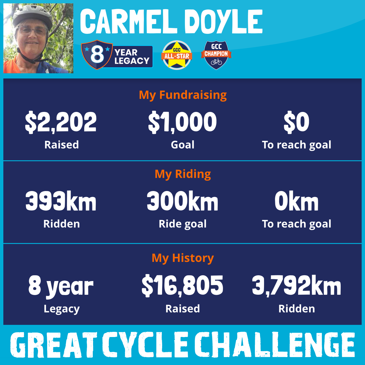 393 km Ridden$2,202 Raised2026