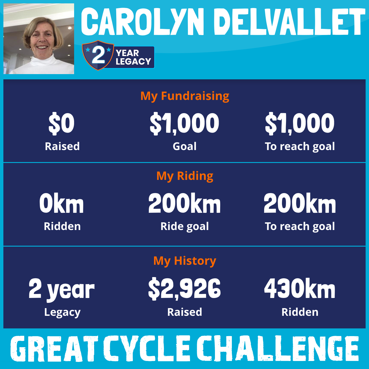 430 km Ridden$2,926 Raised2020