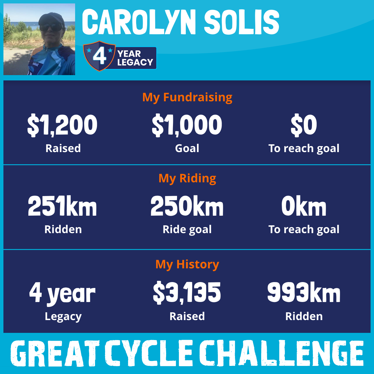 251 km Ridden$1,200 Raised2026