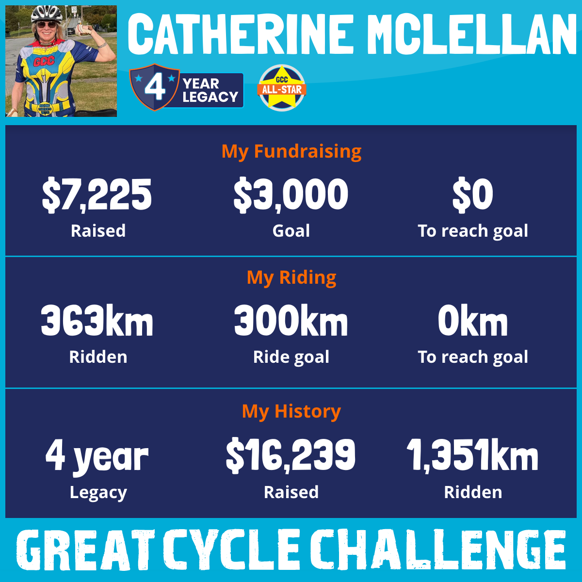 Your support and encouragement inspired me to surpass my ride goal and together we raised $ 7225 !!!