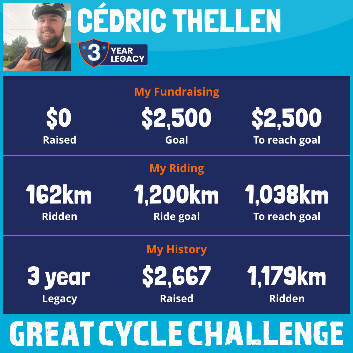 1,018 km Ridden$2,667 Raised2023