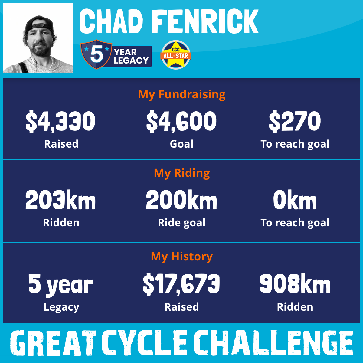 203 km Ridden$4,330 Raised2026