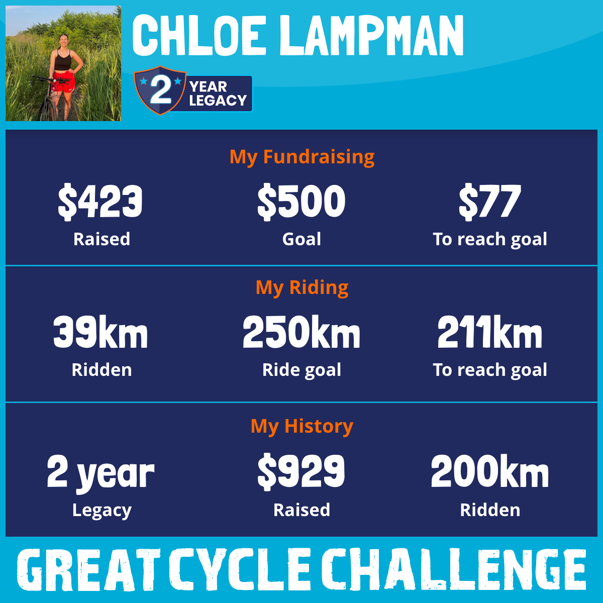 39 km Ridden$423 Raised2026