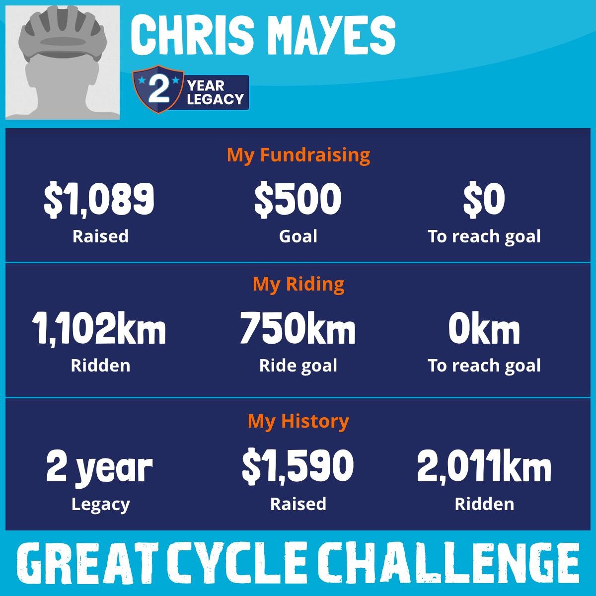1,102 km Ridden$1,089 Raised2026