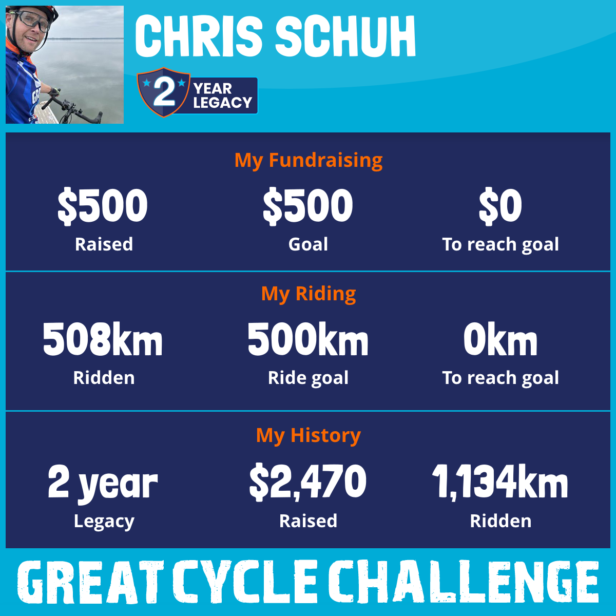 In 2024 I rode the Great Cycle Challenge on my own. This year in 2025 we have a team. Allison, Ember, Nicholas, Parker, Aunty Tracy and I are all riding together as Team Schuh’s.