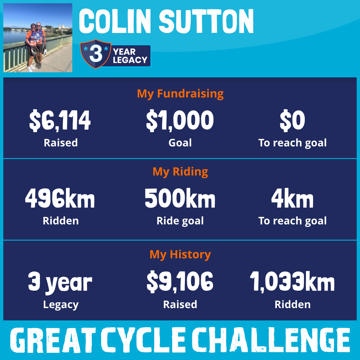 496 km Ridden$6,114 Raised2025