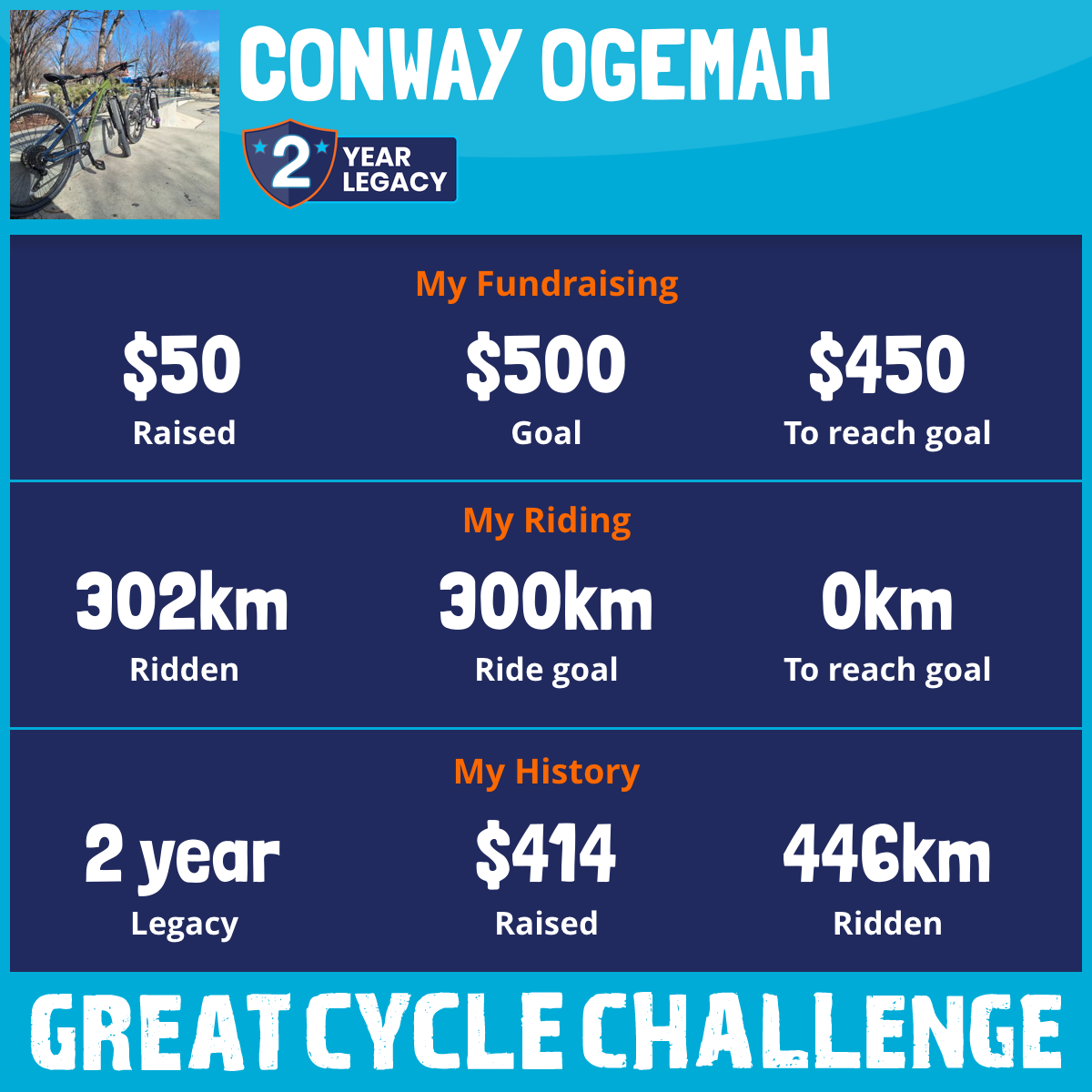 302 km Ridden$50 Raised2025