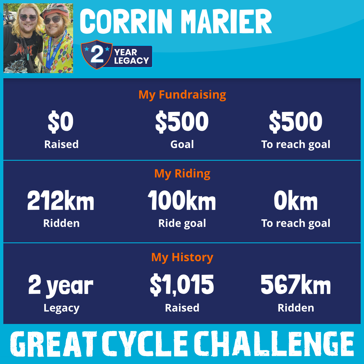 355 km Ridden$1,015 Raised2024