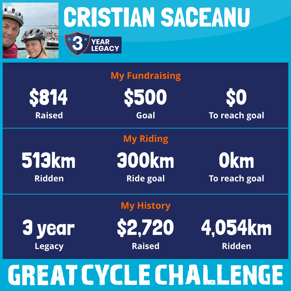 513 km Ridden$814 Raised2026